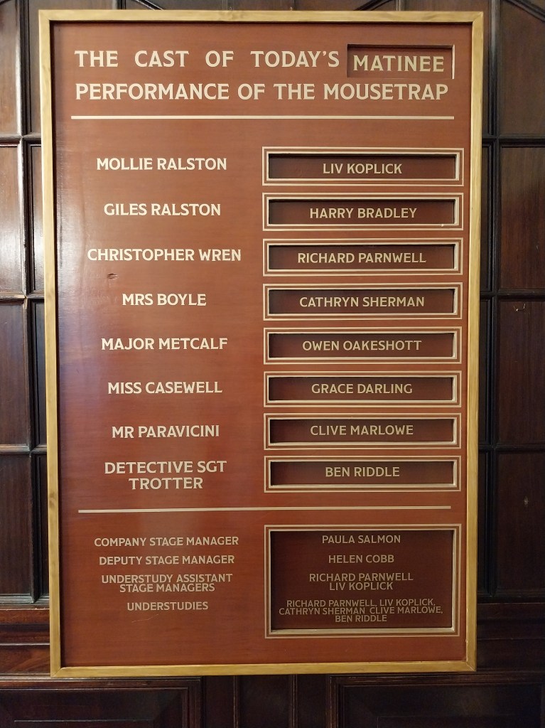 More and more theatres are having understudy runs to allow understudies, the unsung heroes of theatre, to have a chance to perform in front of an invited audience. It was a real privilege to see Cathryn Sherman and Clive Marlowe strut their stuff in the West End – and there were great performances from all the understudies. Congratulation all round!